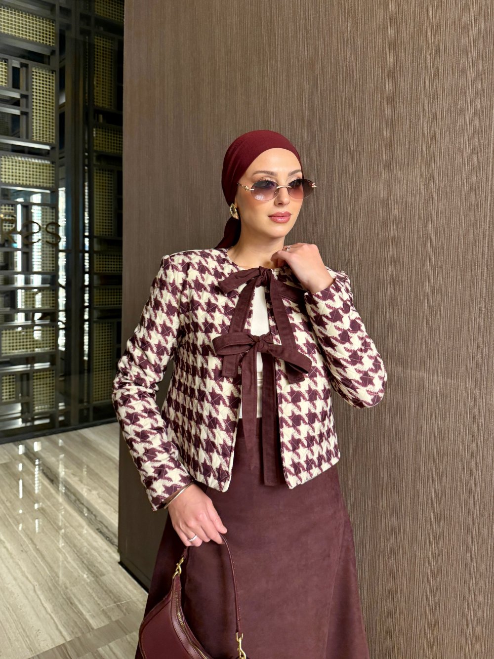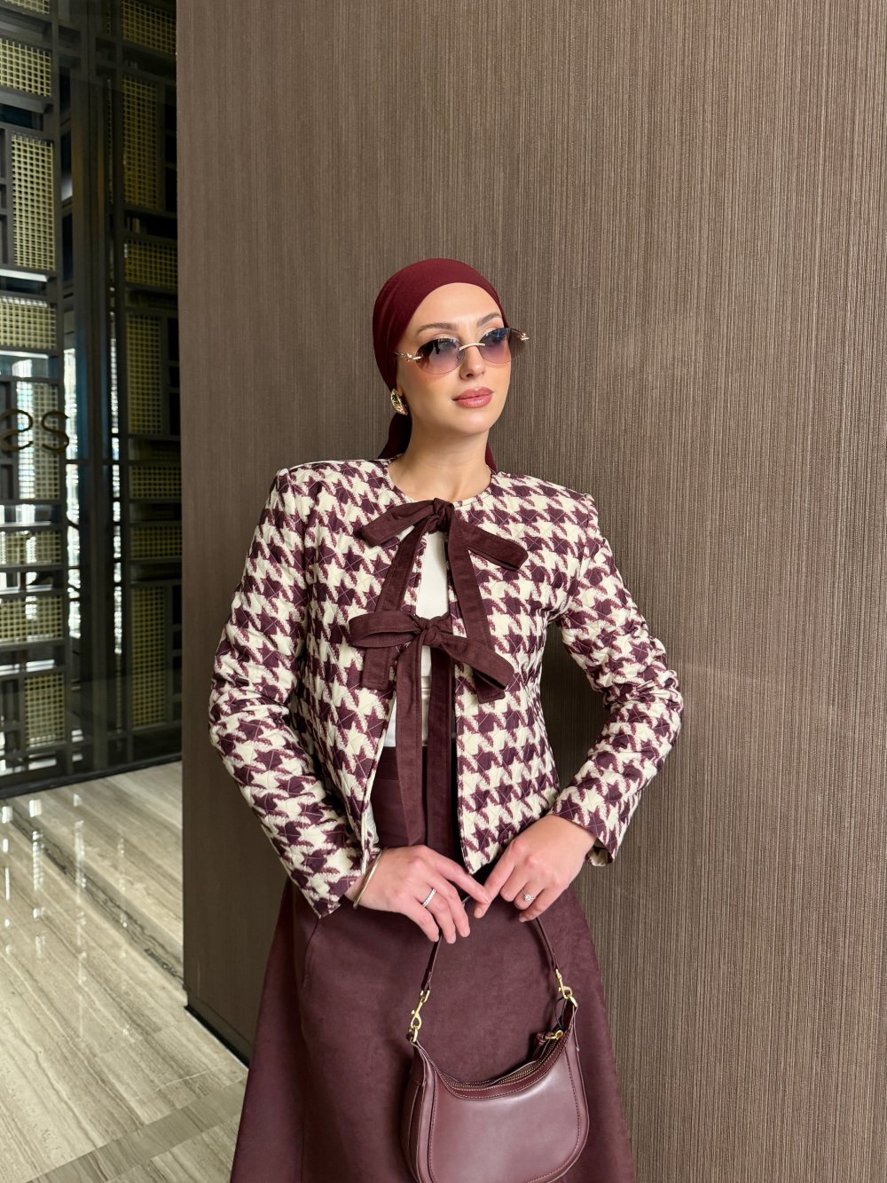 جاكيت البدلة يتميز بنمط الكلب الأسنان.