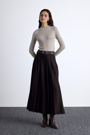 Wide Pleated Skirt Dark Brown ₺5.977,79