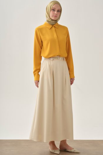 Pleated Skirt with Thin Belt – Ecru ₺1.799,93