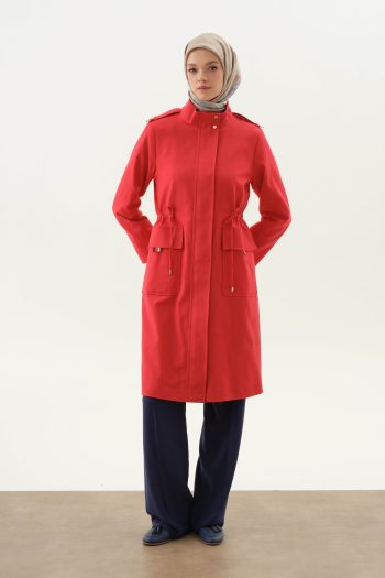Rivet Detailed Belted Jacket – Red ₺2.699,93