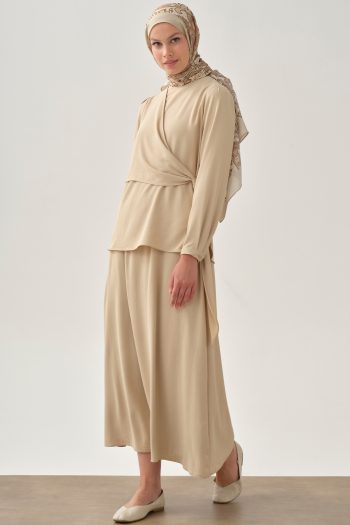 High-Waisted Belted Flared Skirt – Beige ₺2.099,93