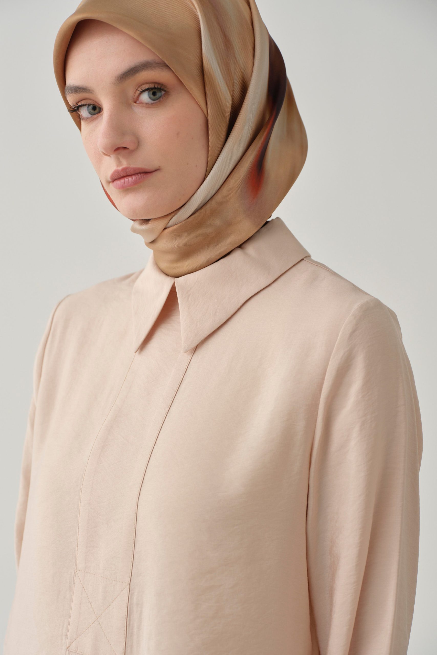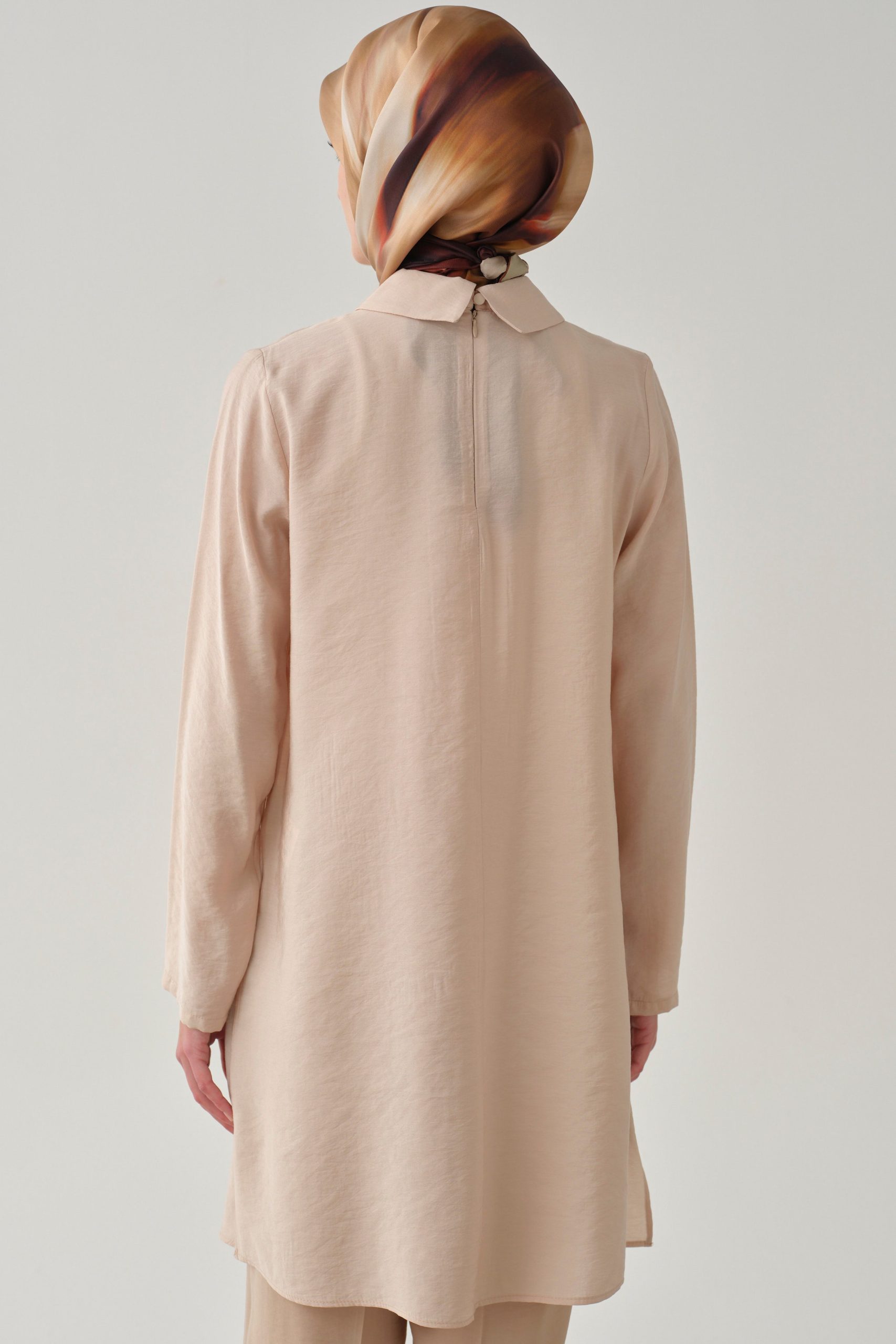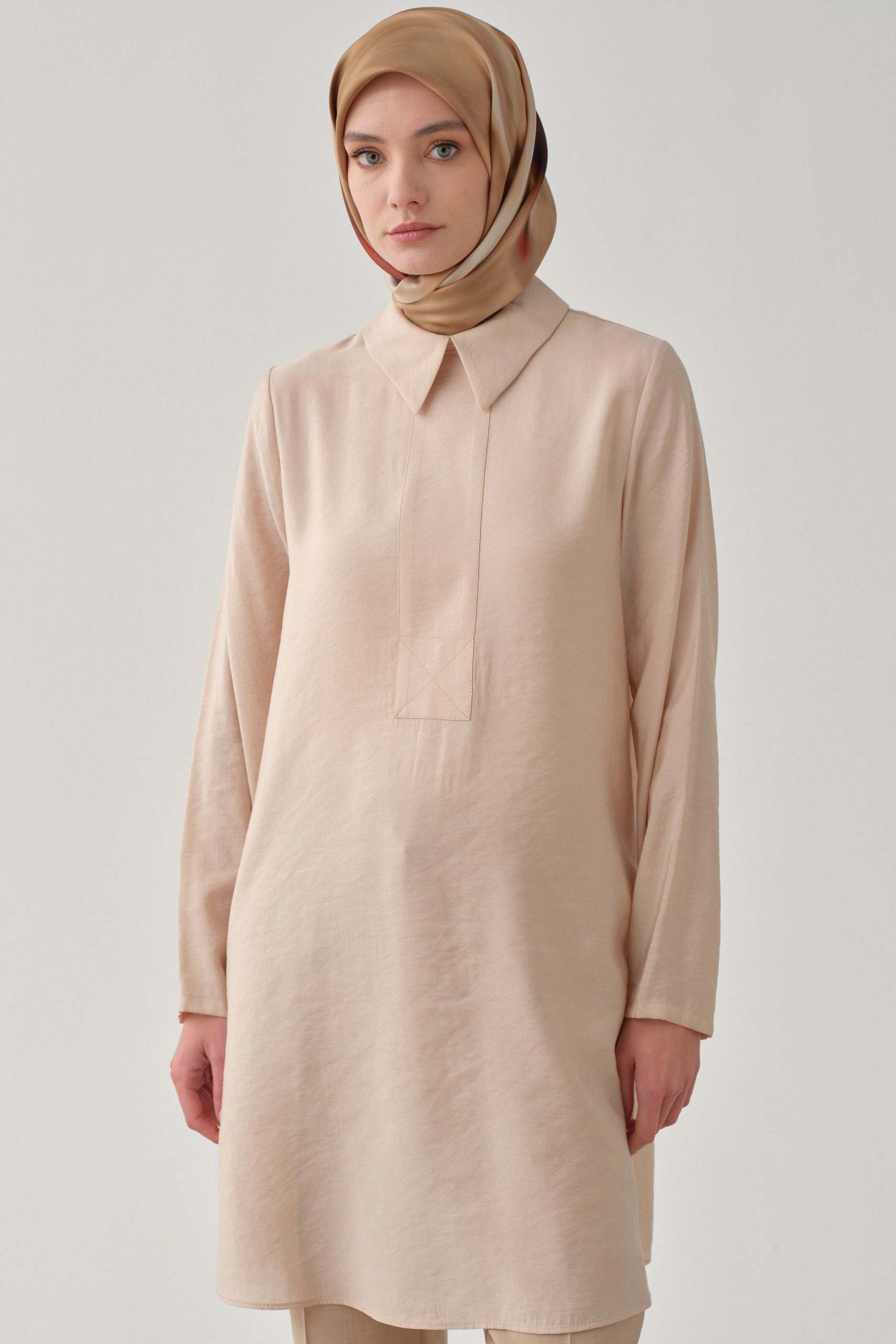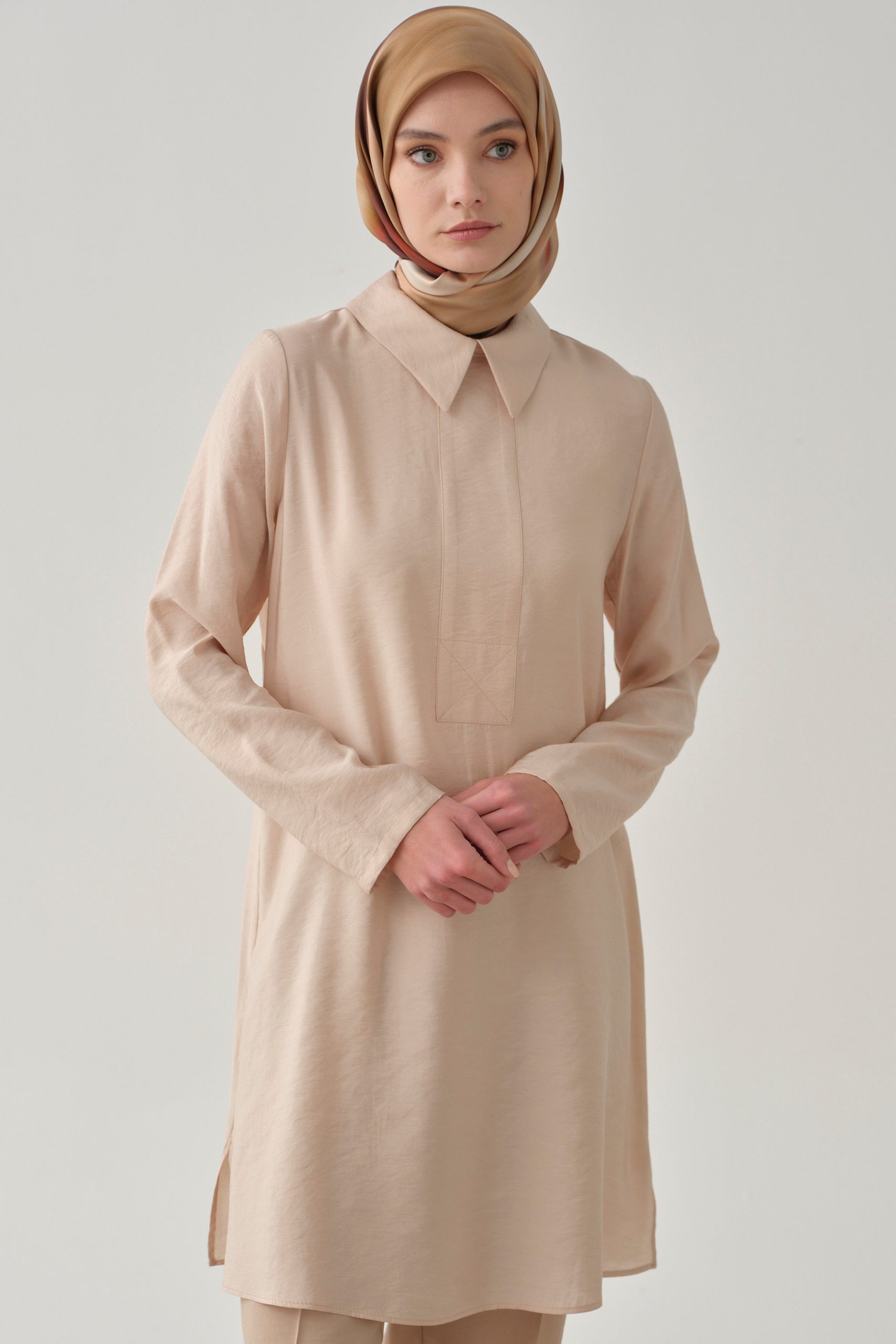 This tunic with half placket detail offers an elegant and modern look. It is a comfortable option for daily use with its stylish cut and practical design.
