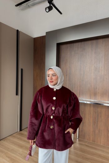 Crafted from a linen-cotton blend fabric, this jacket features a V-neck without collar, buttoned front, double-button closure, and wide kimono sleeves. Model Measurements: Height: 1.78 m, Size: 36. Size 1 (36/38): Length 76 cm, Sleeve Length: 60 cm, Shoulder Width: 40 cm, Chest: 51 cm. Size 2 (40-42): Length 77 cm, Sleeve Length: 60 cm, Shoulder Width: 42 cm, Chest: 53 cm.