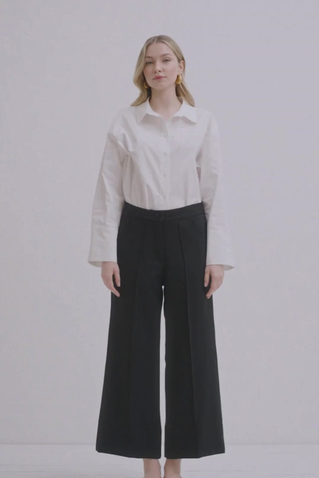 Nicol Dikişli Pantolon Siyah, double krep kumaşının zarif dokusuyla hem şıklığı hem de konforu bir arada sunuyor. Yüksek bel tasarımı, arka beldeki lastik detayları ve fermuar kapama ile mükemmel bir uyum sağlarken, cepler ve dikiş detayları modern bir dokunuş ekler. Geniş paça kesimiyle hareket özgürlüğü sağlar. Şık bir bluzla günlük şıklığınızı tamamlayabileceğiniz gibi, daha sofistike bir hava için topuklu ayakkabılarla da kombinleyebilirsiniz. Her anınıza zarif bir stil eklemek için mükemmel bir tercih! ÜRÜN ÖZELLİKLERİ: Double krep kumaş, Yüksek bel, fermuar kapama, Cepli, önden çıma dikişli, Double paça pantolon. İÇERİK VE BAKIM: %100 PES. Çamaşır makinasında düşük ısıda yıkanabilir. Sererek kurutunuz. Düşük ısıda tersten ütülenebilir. Elle ölçümlerde 2-3 cm değişiklik gösterebilir. Manken Ölçüleri: Boy 174cm, Göğüs 81cm, Basen 93cm. Manken üzerindeki ürün 36 bedendir.