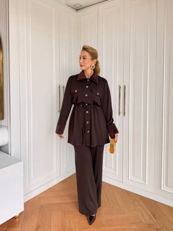 TABA 6496 Suede/Fur Coat with Pockets